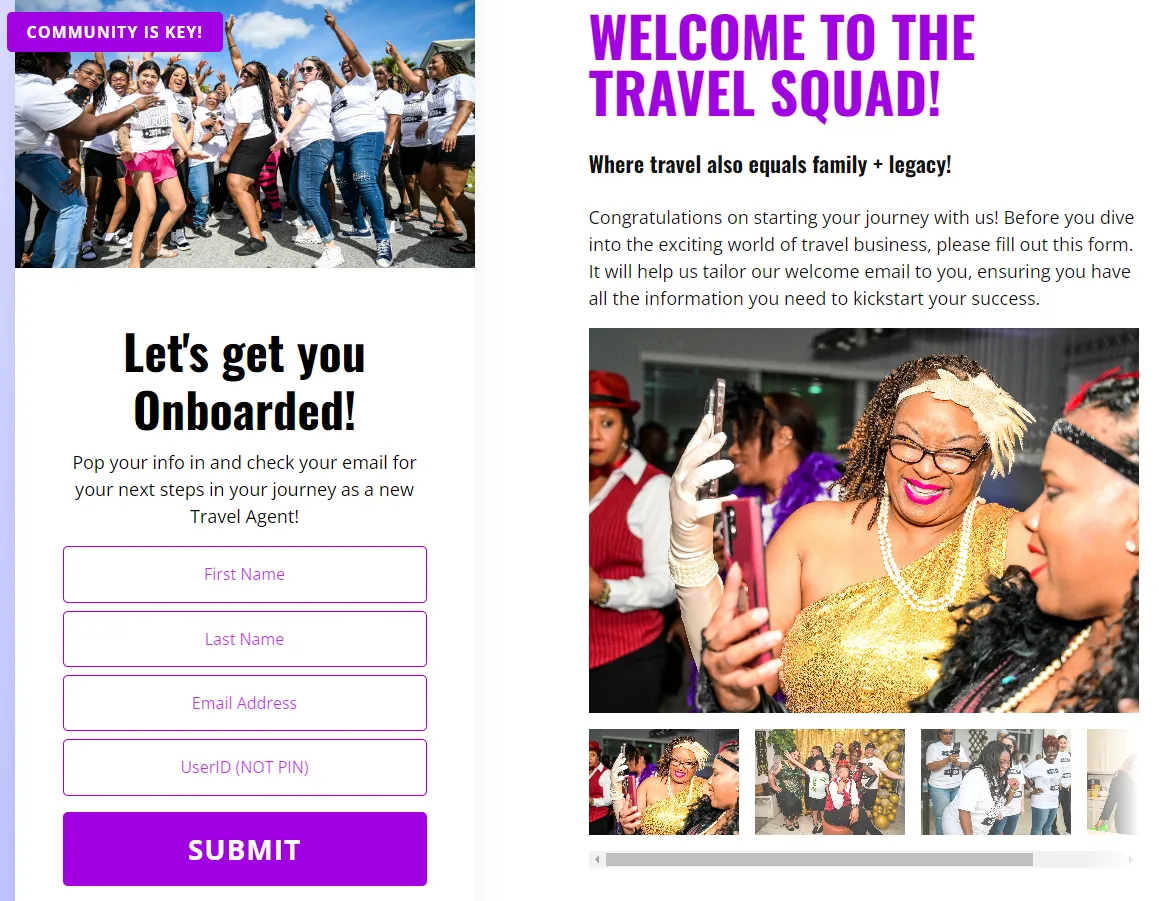 1. First view the steps to enroll here: https://travelsquad.lpages.co/new-agent-rep-enrollment-steps/